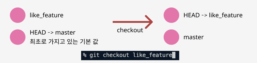 "like_feature" Branch의 working directory에서 새로운 정보를 넣어 commit하면 새로운 checkpoint가 생성됨